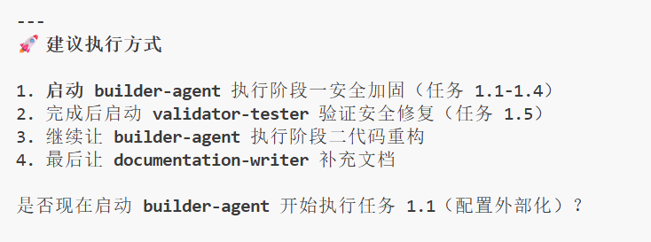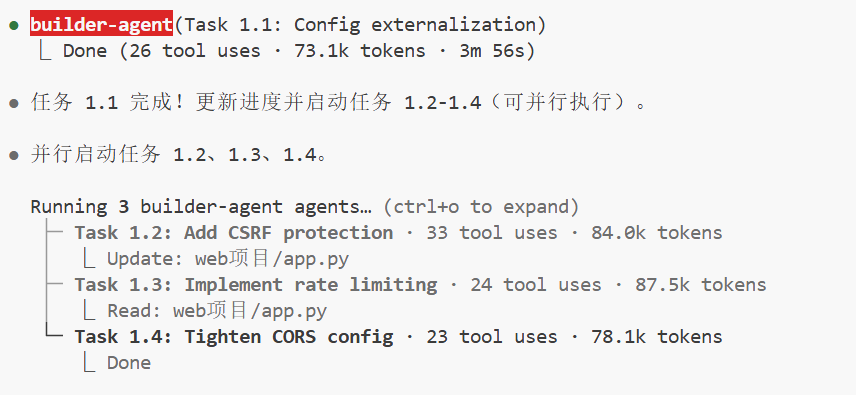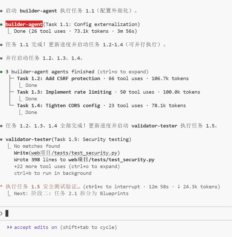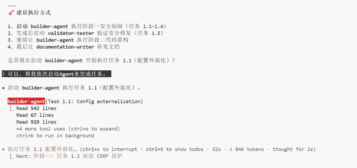 如果看到了 Builder Agent开始干活,并且依据 MULTI_AGENT_PLAN.md 中的任务步骤开始执行,那么恭喜你🎉可以去喝杯咖啡了,接下来就让他慢慢的工作吧!