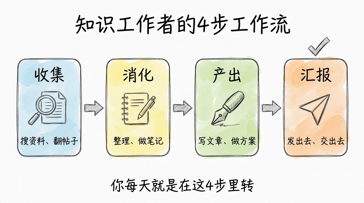 你每天的工作就 4 步:收集 → 消化 → 产出 → 汇报