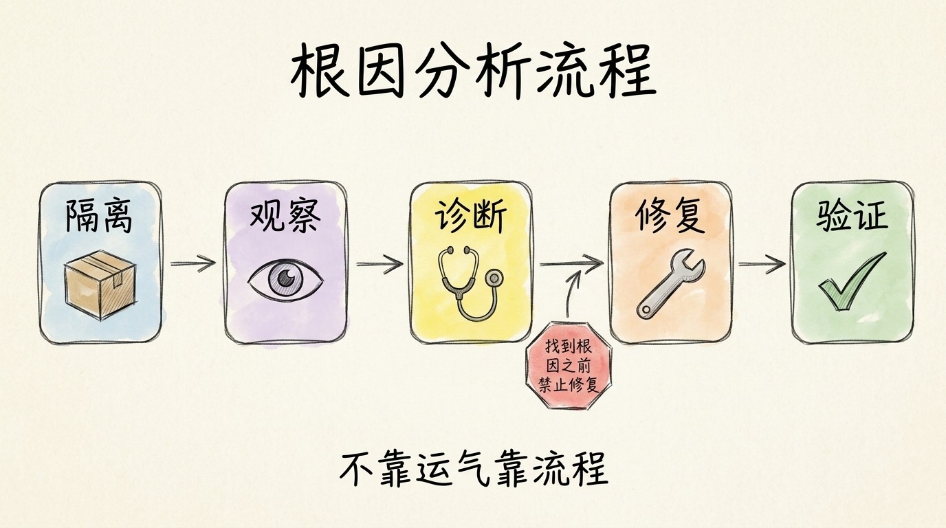 出了问题要能找到根因,不是靠猜,用顺了要能把好流程固化下来,不是每次重来
