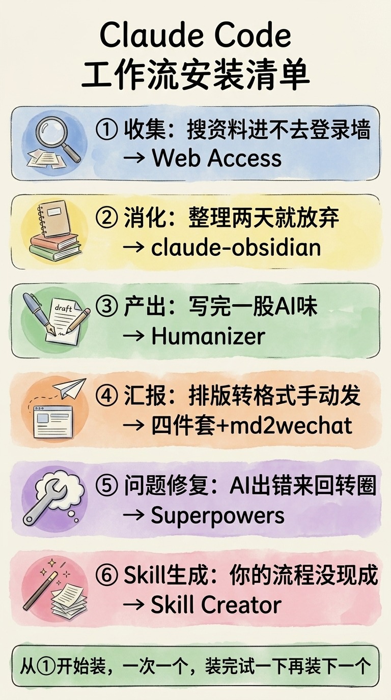 这 6 个 Skill 覆盖了主要环节,但你的工作肯定不止这些,