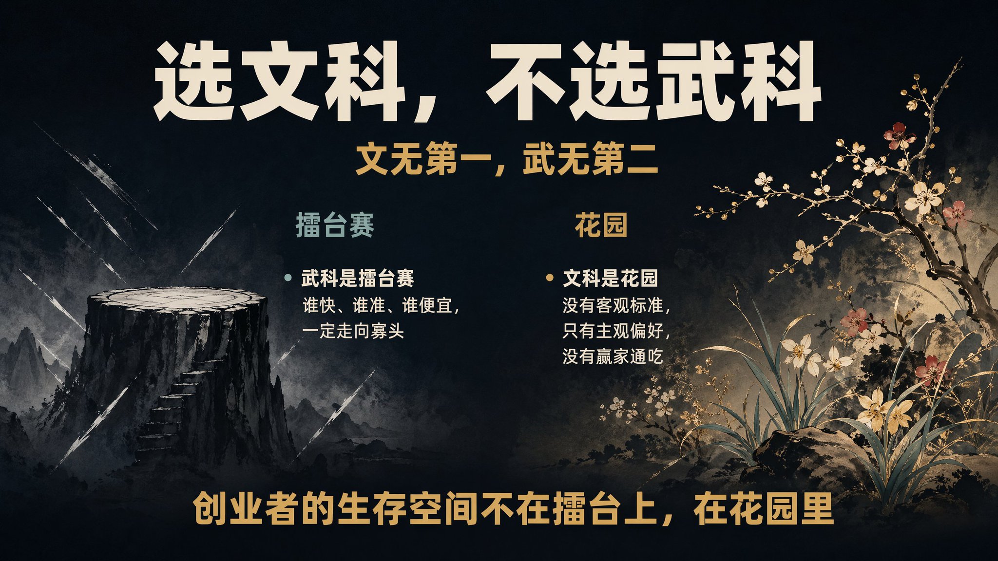 业界共识是“AI 创业要做壁垒高的事”。我们的选择是:文无第一,武无第二。