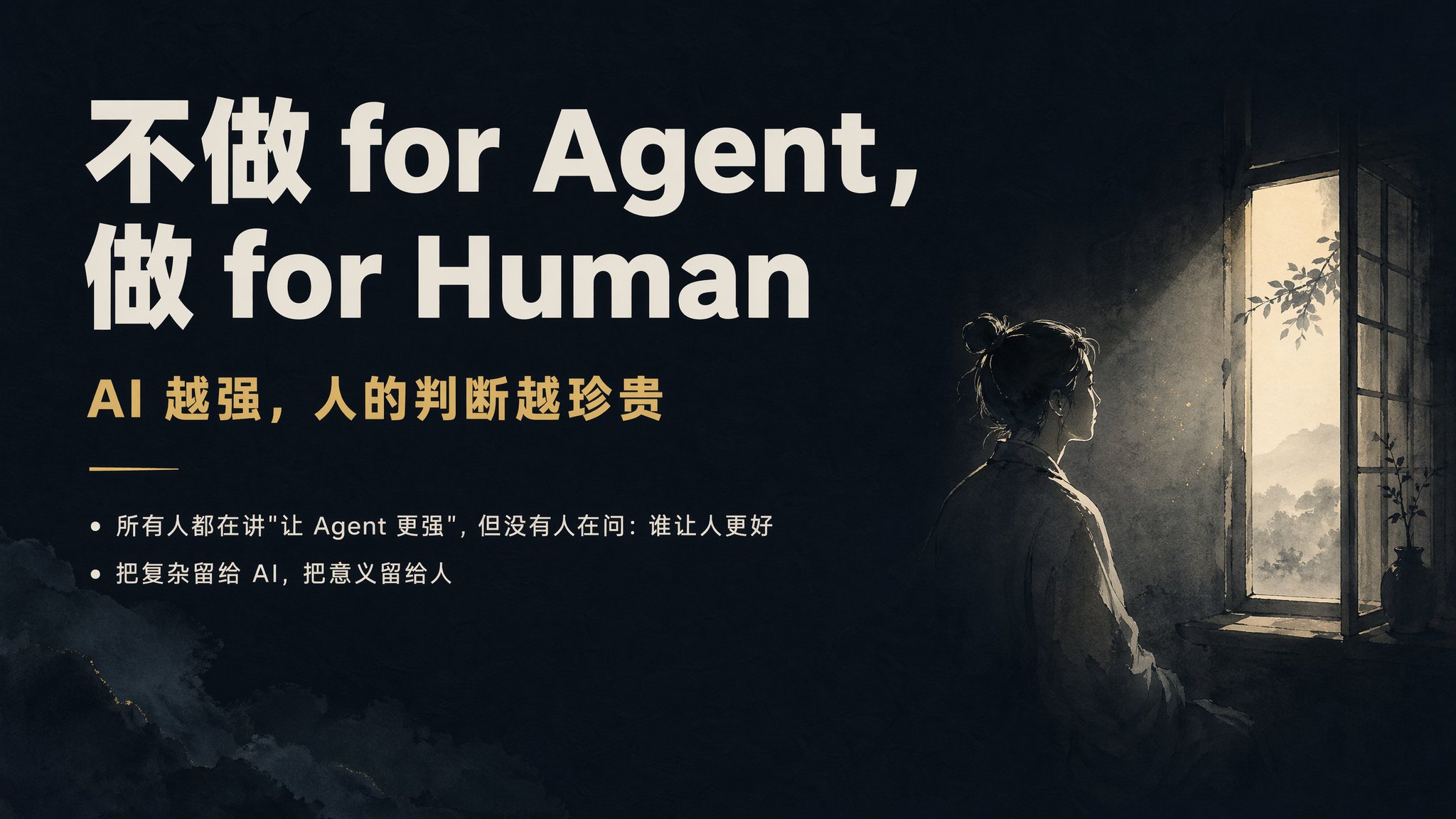 Agent 可以很强,然而最终是人在用、人在决策、人在承担后果。AI 越强,人的判断越珍贵。把复杂留给 AI,把意义留给人。